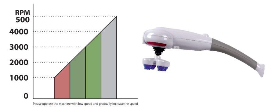 • Place the head on the part, and adjust the speed as you like for the effective massager, start from the arm, leg, back and side in order.
